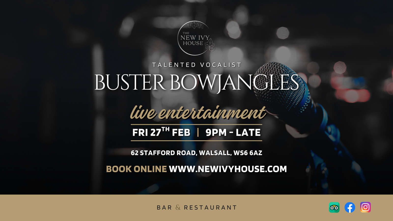 Join us on Friday 27th February for some live entertainment from the fantastic Buster Bowjangles – a talented male vocalist performing a mix of popular hits!