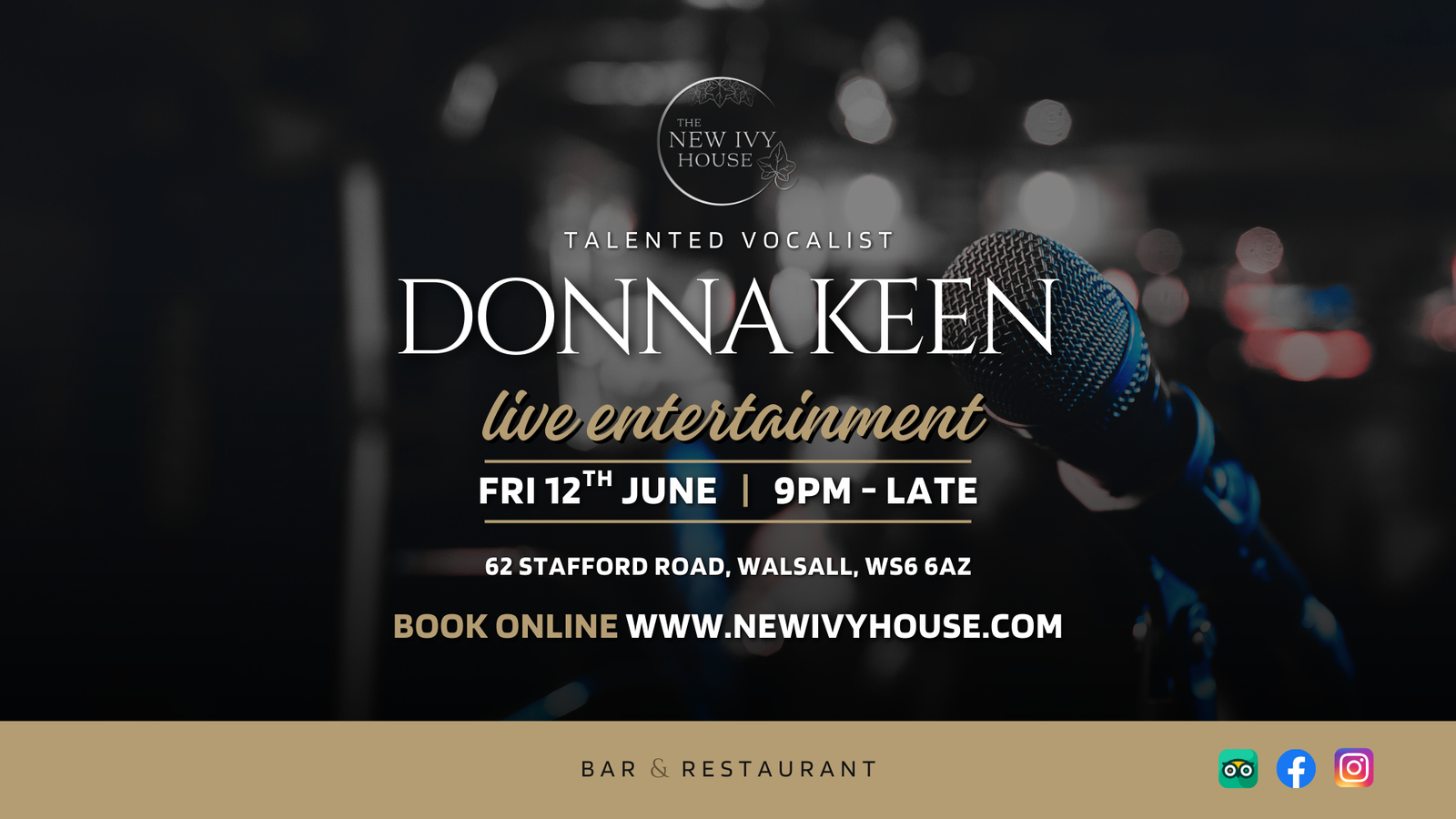 Join us on Friday 12th June for some live entertainment from the fantastic Donna Keen – a talented female vocalist performing a mix of popular hits! 🎤
