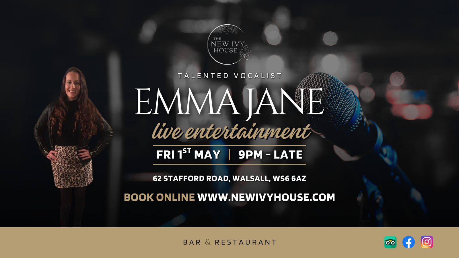 Join us on Friday 1st May for some live entertainment from the fantastic Emma Jane- a talented female vocalist performing a mix of popular hits!