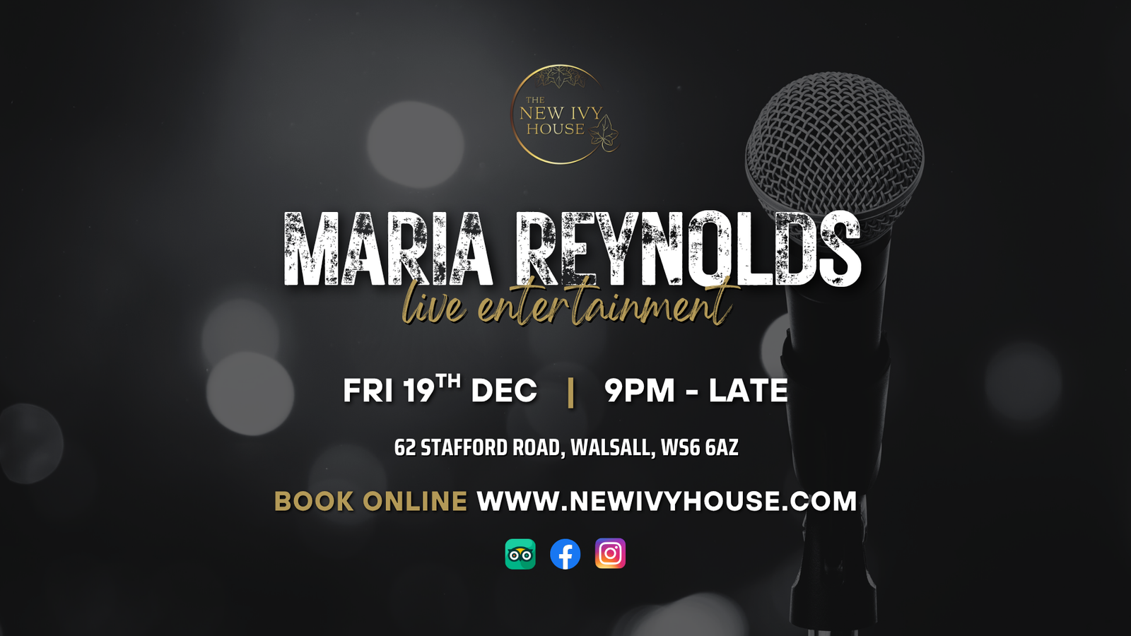 Join us on Friday 19th December for some live entertainment from the fantastic Maria Reynolds – a talented female vocalist performing a mix of popular hits!