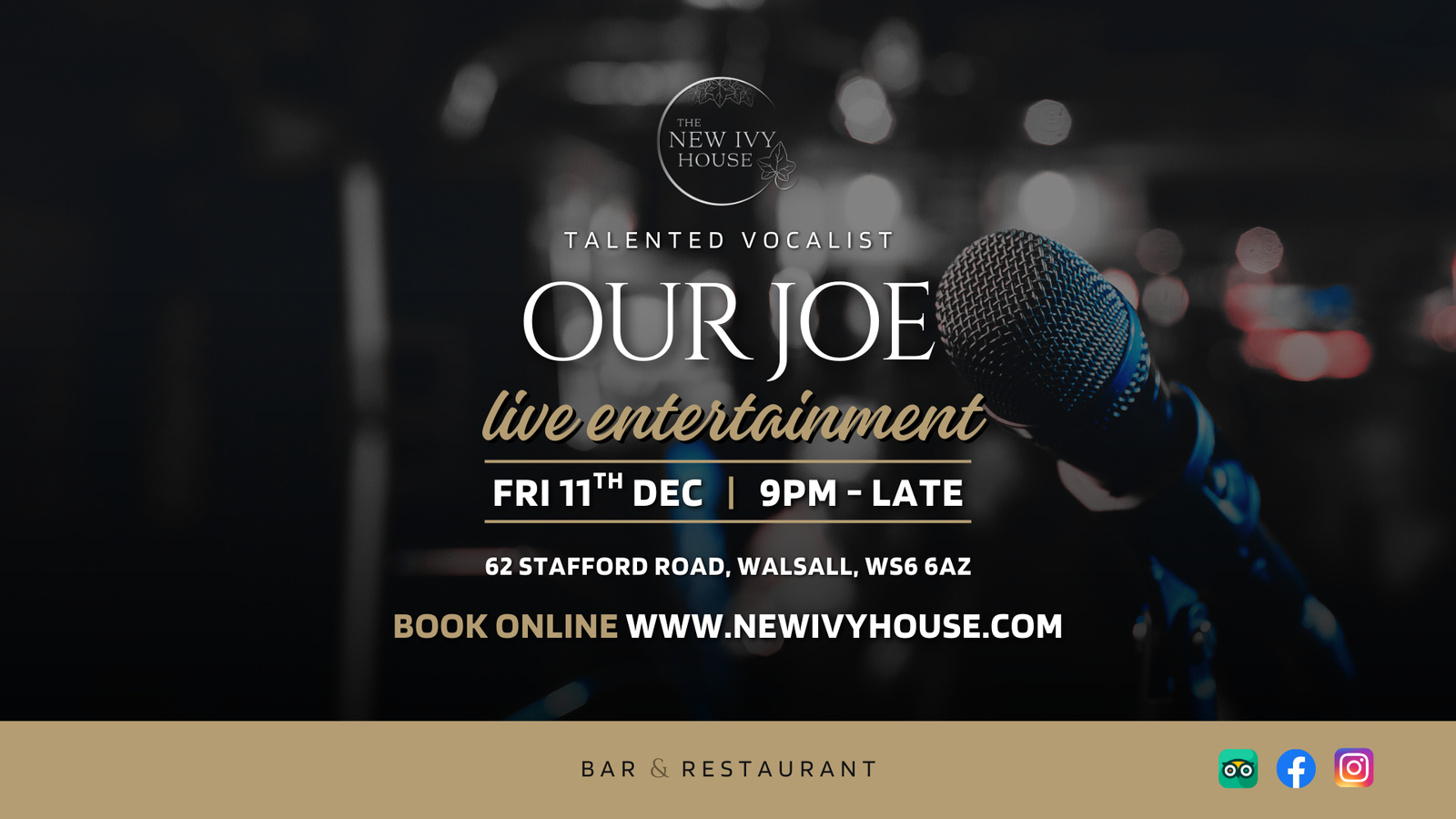 Join us on Friday 11th December for some live entertainment from the fantastic Our Joe – a talented vocalist performing a mix of popular hits!