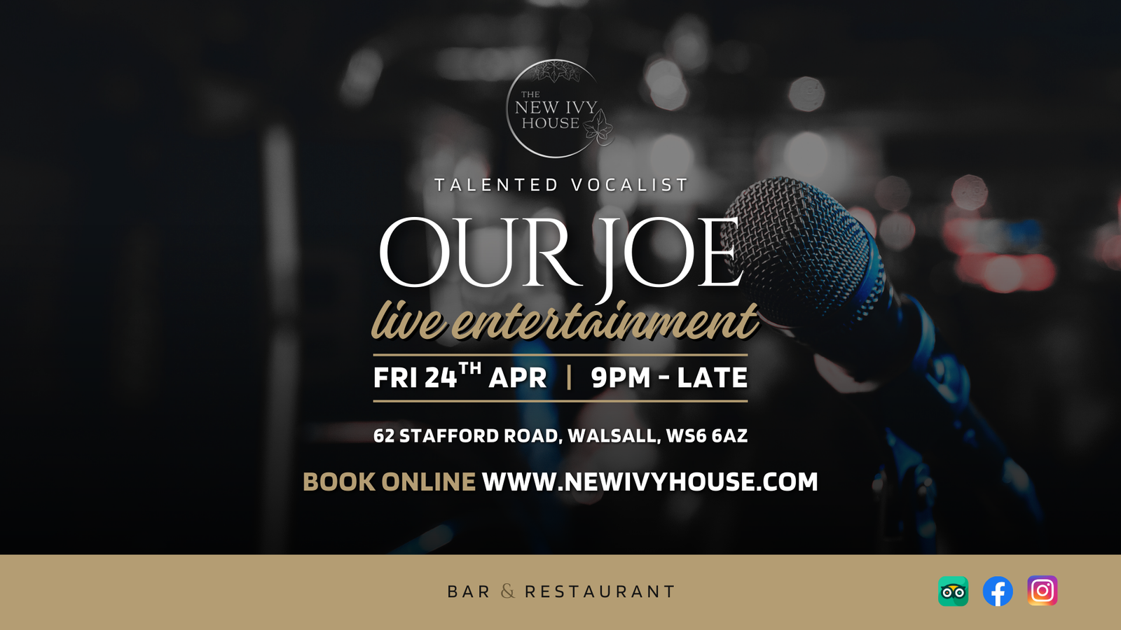 Join us on Friday 24th April for some live entertainment from the fantastic Our Joe – a talented vocalist performing a mix of popular hits!