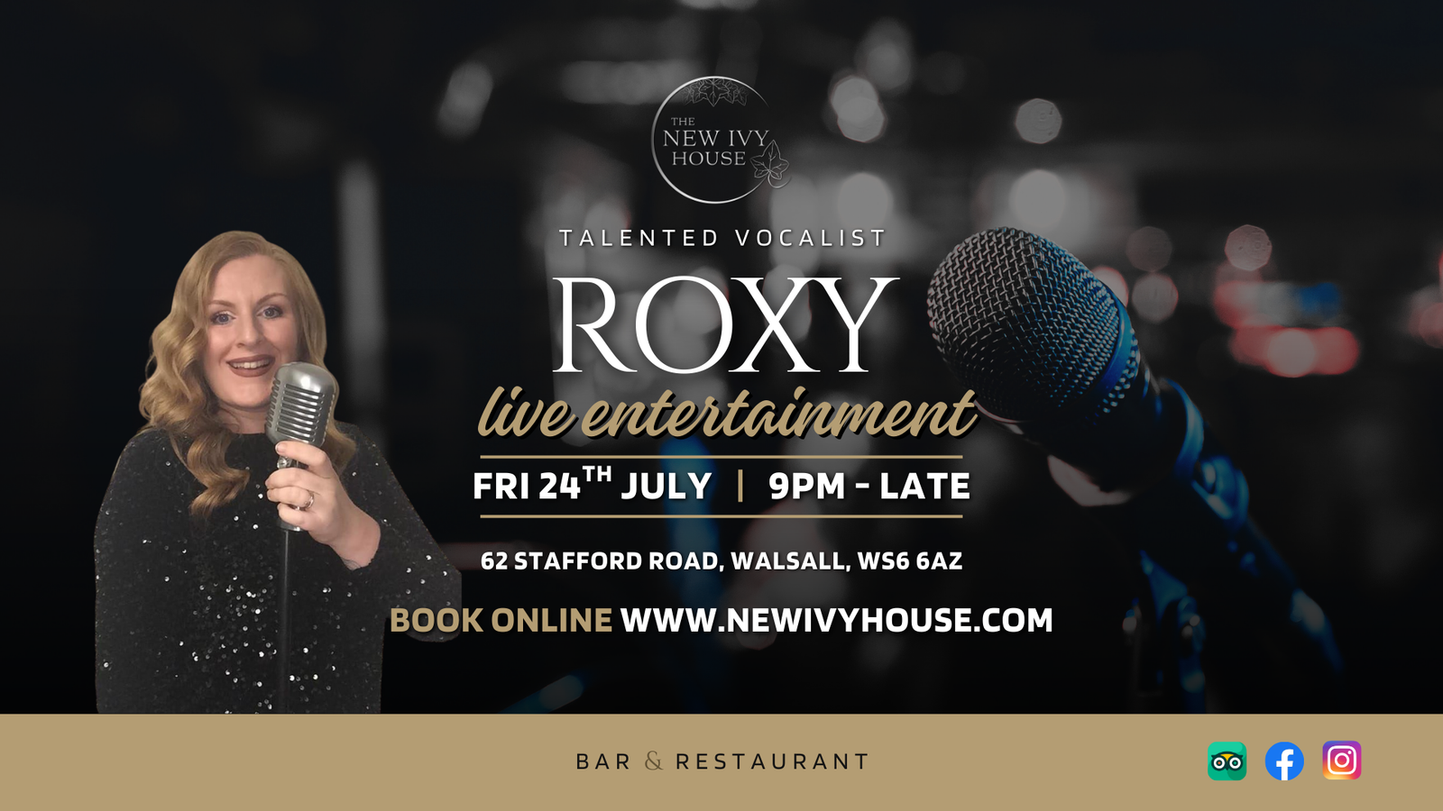 Join us on Friday 24th July for some live entertainment from the fantastic Roxy – a talented female vocalist performing a mix of popular hits! 🎤
